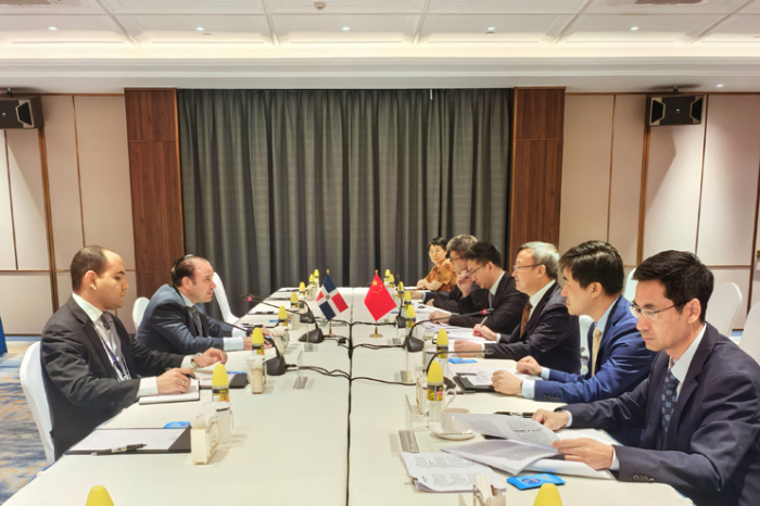 9月12日下午,商务部国际贸易谈判代表(正部长级)兼副部长王受文在海南博鳌会见多米尼加外交部经济与国际合作事务副部长里维拉。