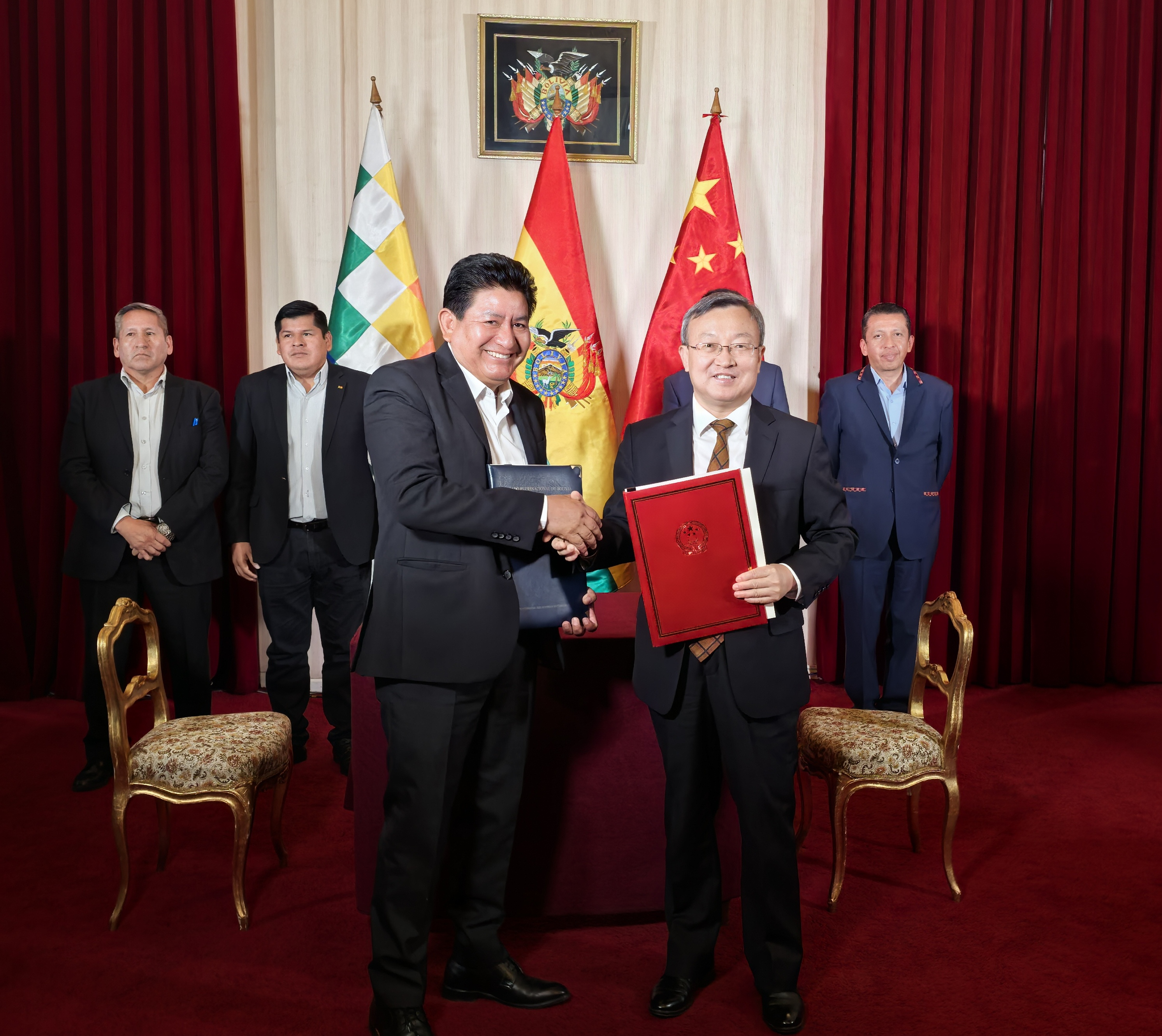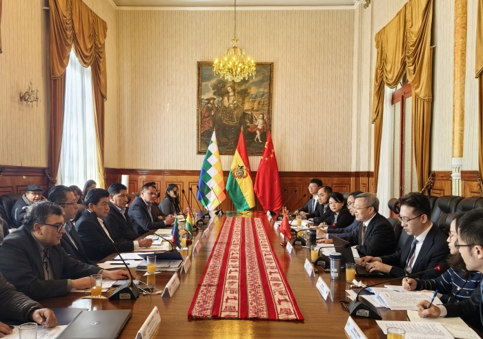 10月28日,商务部国际贸易谈判代表(正部长级)兼副部长王受文在玻利维亚拉巴斯与玻外交部外贸一体化副部长阿哈塔共同主持召开中玻经贸混委会第15次会议,并与玻方签署《中玻关于加强数字经济领域投资合作的谅解备忘录》和有关援助项目交接证书。